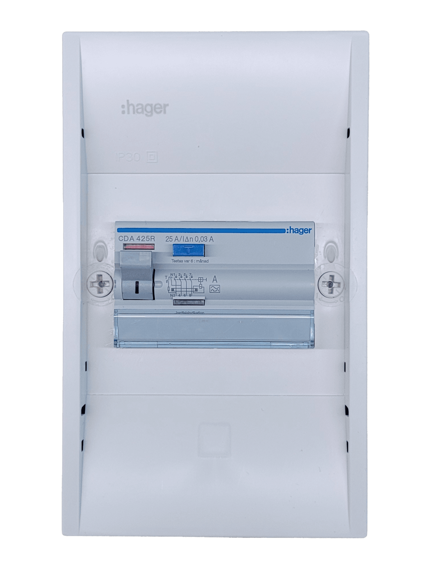 Detta pris gäller när det finns en befintlig normcentral med plats för utökning eller vid köp av någon av våra elcentraler men behöver kompletteras med personskyddsbrytare.